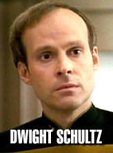 Schultz The 2009 Miss Klingon Empire Beauty Pageant Star Trek Guest Stars A native of Baltimore, Maryland, Dwight is best known to Star Trek fans as Reginald Barclay in five episodes of Star Trek: The Next Generation ("Hollow Pursuits," "The Nth Degree," "Realm of Fear," "Ship in a Bottle" and "Genesis"), six episodes of Star Trek: Voyager ("Projections," "Pathfinder," "Life Line," "Inside Man," "Author, Author" and "Endgame"), and in Star Trek: First Contact. He also voiced the role in the video game Star Trek: Elite Force II. Dwight worked in theater for fifteen years before transitioning to television. He appeared in the TV movies Thin Ice, Dial M for Murder and Sherlock Holmes before becoming famous for his portrayal of H. M. "Howling Mad" Murdock on The A-Team from 1983 through 1987. Dwight made several more television appearances, including guest spots on shows from Hill Street Blues, CHiPs and Jake and the Fatman to Lois & Clark: The New Adventures of Superman, Walker, Texas Ranger and the 1990s version of Fantasy Island. He also appeared on a number of other science fiction series, including Babylon 5, in which he played a crazed lurker in the episode "The Long Dark," and Stargate SG-1, playing The Keeper in the episode "The Gamekeeper." In addition, Dwight had roles in several films, most notably as J. Robert Oppenheimer in the 1989 historical drama Fat Man and Little Boy. He also costarred in 1990's The Long Walk Home and in the 1993 thriller The Temp. Dwight has recently been focusing his talents on voice acting in a number of films, TV projects and video games, and has even lent his voice to episodes of Seth MacFarlane's series Family Guy. Some of his notable voiceover roles include Eddie the Squirrel on Nickelodeon's CatDog, O'aka XXIII and Maechen in the Final Fantasy X games, and various roles in the Everquest computer games. He currently voices Dr. Amino on Ben 10 and Mung Daal in Chowder, both on the Cartoon Network. | ||